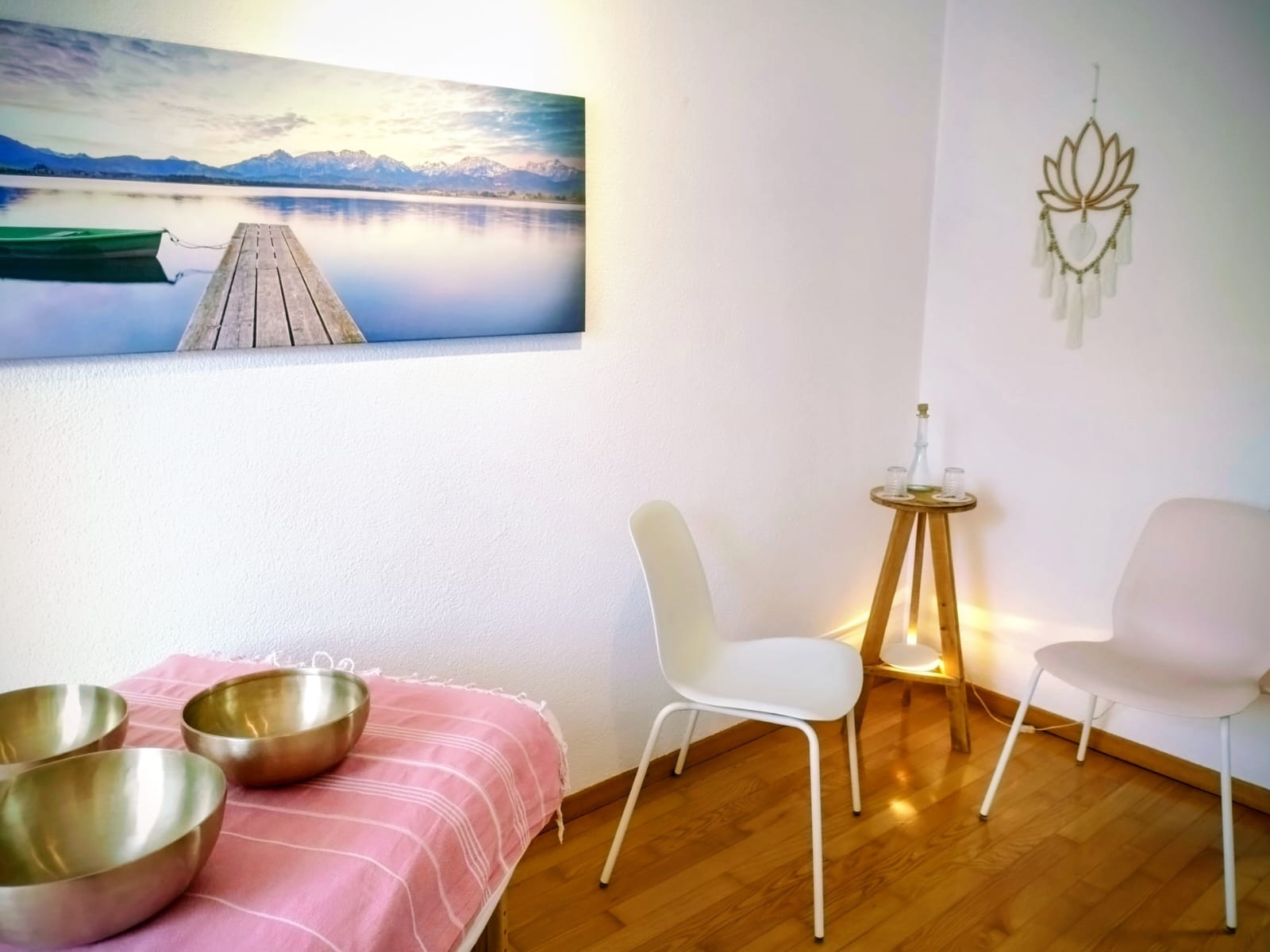 Meine erste Klangmassage bei Pascale im behaglich eingerichteten Behandlungsraum war wunderbar. Nach einem kurzen Vorgespräch hat mich Pascale auf der Therapieliege mit Hilfe von verschiedenen Klangschalen in einen physisch und mental wohltuenden Entspannungszustand geführt: